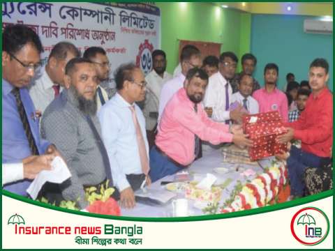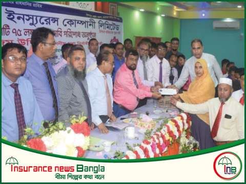 বীমা দাবীর চেক প্রদান করছেন কোম্পানীর মুখ্য নির্বাহী কর্মকর্তা